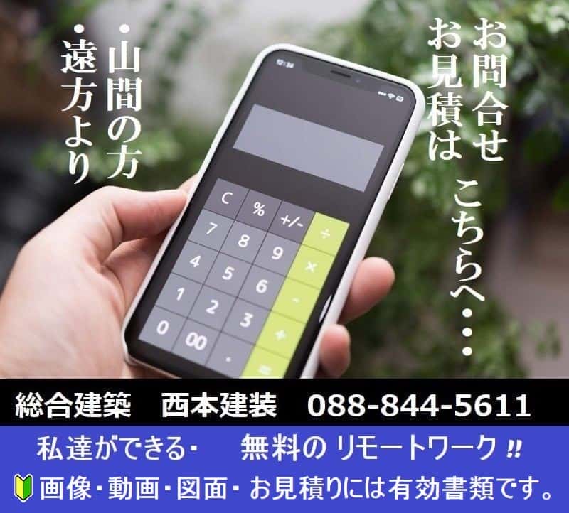 | 自宅〜山間部:遠方のLINEの登録でリモートで無料のお問合せ.お見積りができます。 |