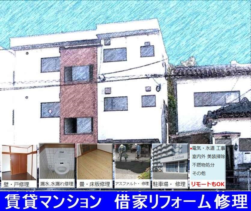 畳工事 床工事 水道修理 壁修理 美装工事 雨漏り修理 外壁工事 襖工事 塗装工事