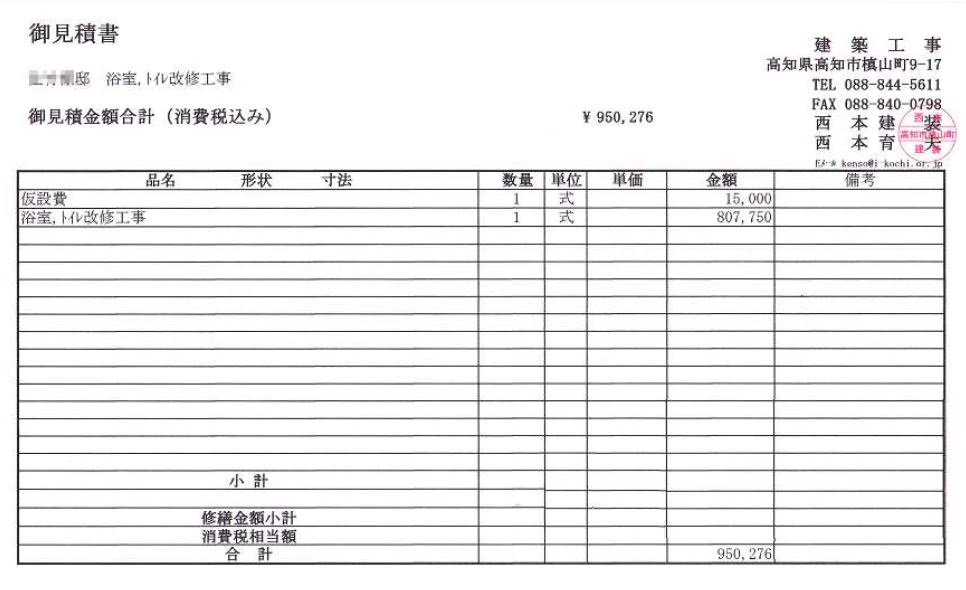 お見積書の部分の価格も参考にご覧下さい。